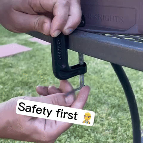 Place the ChuggerKnights® Party Game on a solid table. Secure the game with the additional clamps supplied for better stability.