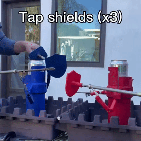 To start, tap the shields three times against each other. No stabbing allowed before! After the third shield contact, start attacking your opponent.